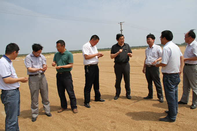 6月6日下午,蘇墾農發股份公司總裁胡兆輝一行來淮海檢查指導“三夏”工作。淮海領導王進強、賀在銳、王燦明等陪同檢查。一到淮海,胡兆輝一行顧不上休息,就走進田間地頭,仔細查看了夏收、夏插工作。王進強向胡兆輝詳細匯報了“三夏”工作情況。王進強說,截止5月30日,淮海大麥收割全部結束,平均單產超過1020斤。至6月5日,已收割小麥4000畝,平均畝產千斤以上。太平生產區三夏工作井然有序,6月4日已開鐮收割。王進強表示,在三夏工作中,淮海嚴格按照“四保一增一安全”的要求,搶時間、爭速度,力爭在6月11日前完成收割任務,6月20日前全面完成夏插任務。