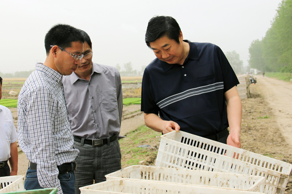 趙廣福、韓正光的陪同下,對白馬湖分當前的三夏工作進行檢查指導,對大華種業華萃農業科技公司、物流公司大華生物科技公司的發展戰略進行定位和明確。胡總一行先后考察了白馬湖分的三夏工作情況以及大華種業白馬湖分公司的保種工作情況。其間,他通報了農發公司和拓展基地今年三夏產量超歷史和效益滿堂紅的喜人形勢,要求白馬湖分公司圍繞“四保一增一安全”的目標,上下一心、全力以赴保好種子、搞好三夏,進一步提高夏熟豐收的含金量。在大華種業華萃農業科技公司,胡總一行除了對該公司的育苗工作和蔬菜生產進行檢查指導外,還重點就該公司的發展定位進行了明確。強調要求該公司開動腦筋、轉變思路、搞好規劃,從戰略高度充分整合資源和各類生產要素,以大動作、大手筆、大調整和大突破,全力打造種苗產業新平臺。在物流公司大華生物科技公司,胡總一行在考察該公司的生產情況、聽取公司經理周明的介紹后,強調要求該公司圍繞科技、質量和服務,內固基地、外拓市場,擴大產品的競爭力和影響力。(張志成)