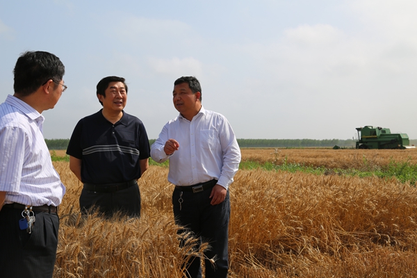 6月7日,蘇墾農發股份公司總裁胡兆輝一行來到三河檢查指導“三夏”工作。場黨委書記、分公司總經理李德利,黨委副書記、場長王波成、紀委書記、工會主席王強等陪同檢查。