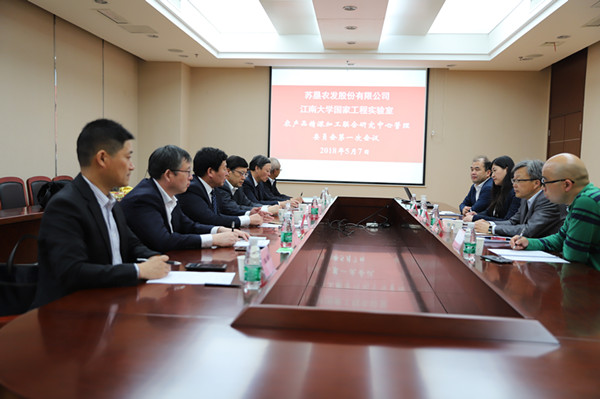 簽約儀式結束后,蘇墾農發股份公司-江南大學國家工程實驗室農產品精深加工聯合研究中心管理委員會召開了第一次會議。會議審議通過了聯合研究中心章程;通過了聯合研究中心、主任、副主任、首席科學家建議人選名單;通過了年度工作計劃及科研項目立項計劃。