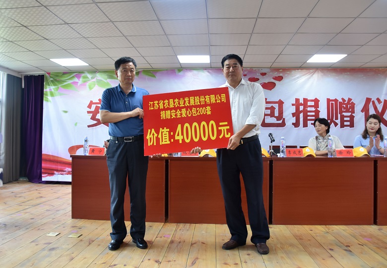 9月9日,蘇墾農(nóng)發(fā)股份公司通過省婦女兒童福利基金會向同興鎮(zhèn)中心小學(xué)捐贈安全愛心包。蘇墾農(nóng)發(fā)黨委副書記、工會主席倪志愿,江蘇省婦女兒童福利基金會辦公室主任李成忠,市婦聯(lián)主席孫小嵐出席本次活動。