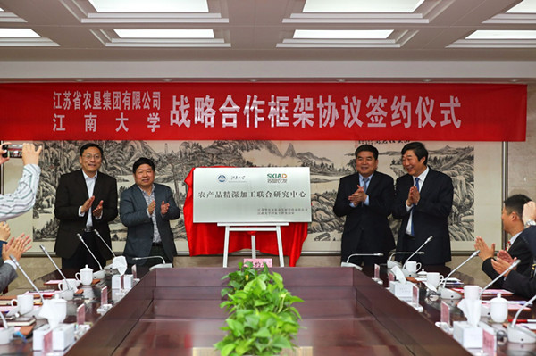 • 蘇墾農發股份公司與江南大學國家工程實驗室聚焦國際“大健康、大食品、大產業”前沿技術,合作共建農產品精深加工聯合研究中心。江蘇農墾與江南大學有著長期而深厚的合作基礎,雙方建立全面戰略合作關系、共建農產品精深加工聯合研究中心,是雙方發揮各自優勢、推進“產學研用”深度合作的重要舉措。研究中心圍繞優勢互補、強強聯合,深入開展協同創新,共同打造全省農產品精深加工、農產品質量安全、農業物聯網應用的示范基地和校企緊密合作的新典范。雙方以此為起點,將戰略合作向更深領域、更高層次推進,深度整合、共享科技資源和產業資源,共同為全省乃至全國農業現代化建設作出更大貢獻。