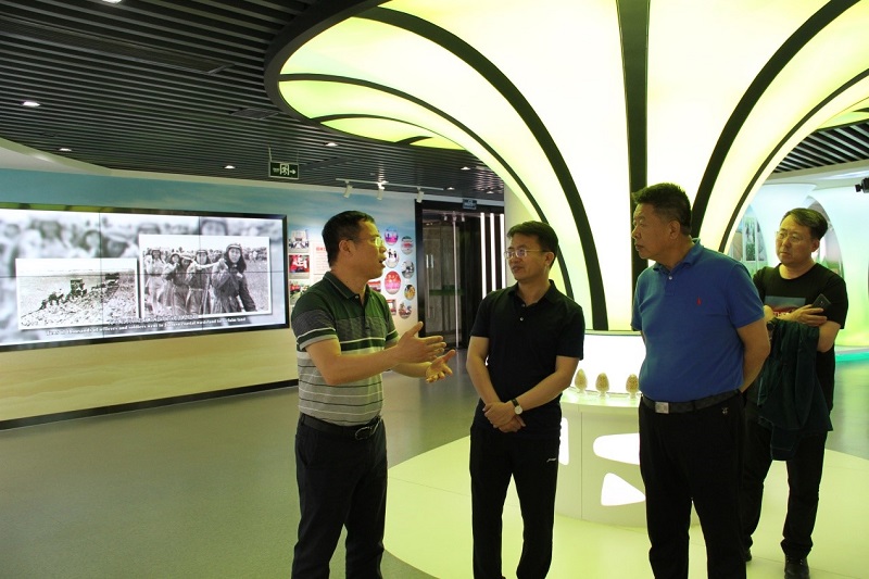 座談會前,李福罡、常東旭一行到蘇墾大廈19樓江蘇農墾展示廳參觀了解農墾創業發展史和農發主要產品展示。