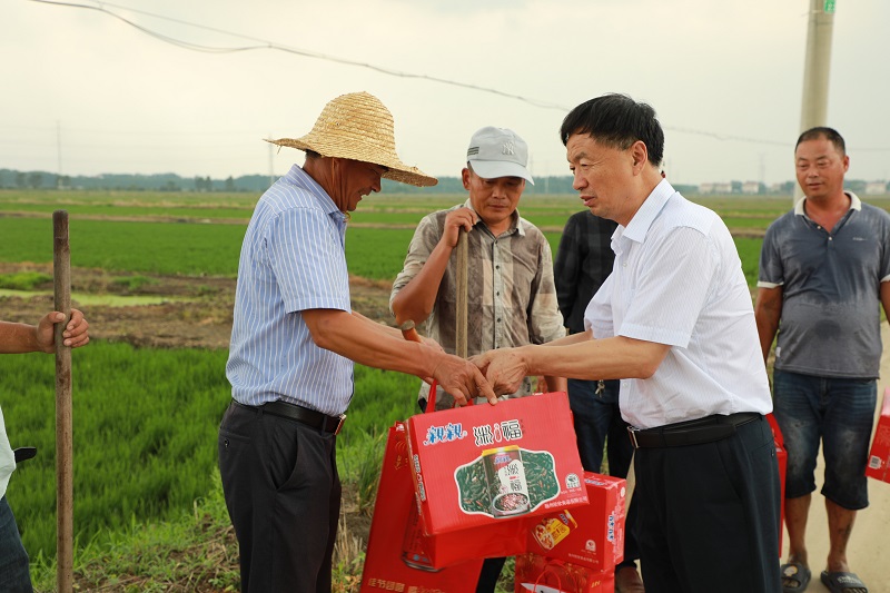 • 7月14日下午,蘇墾農發公司黨委副書記、工會主席倪志愿一行來到崗埠分公司開展“送清涼、送安全、送法律”慰問活動。