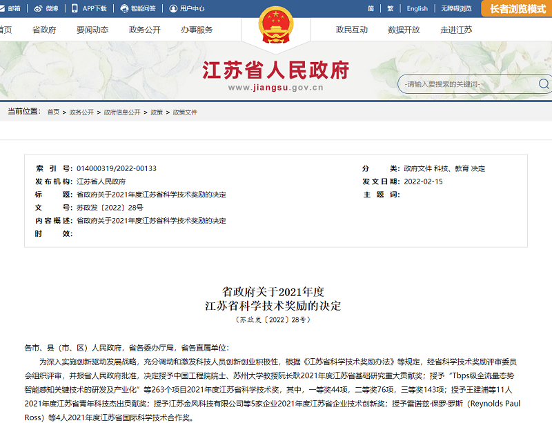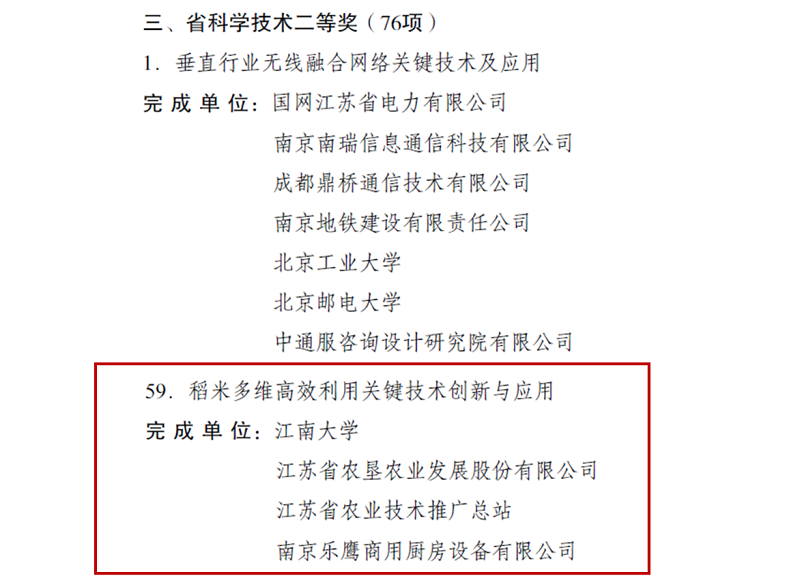 • 近日,江蘇省人民政府發布《省政府關于2021年度江蘇省科學技術獎勵的決定》(蘇政發〔2022〕28號),江蘇省農墾農業發展股份有限公司與江南大學等單位合作研發的“稻米多維高效利用關鍵技術創新與應用”成果榮獲二等獎,這是蘇墾農發公司組建以來首次獲得該獎勵,彰顯公司在農產品精深加工領域內突出的研發能力和創新潛質。