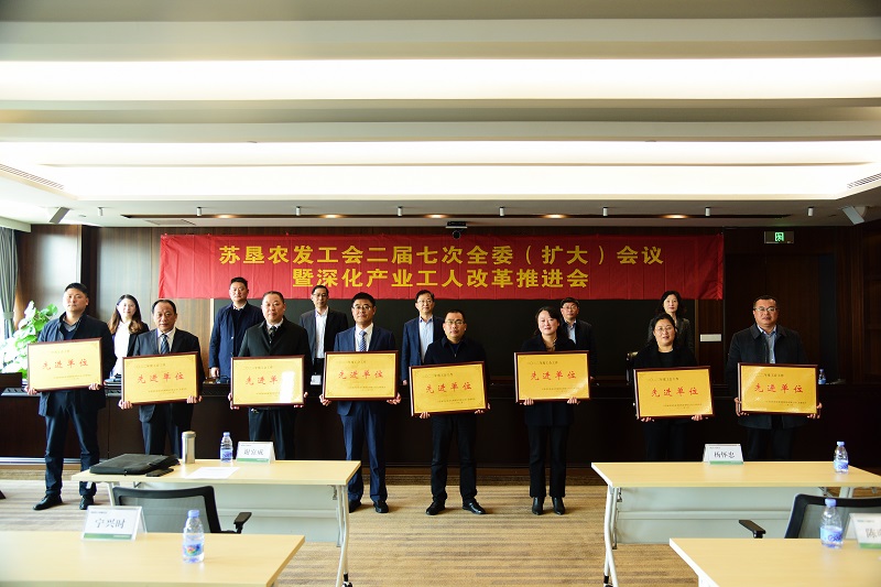 會議期間,東辛分公司、淮海分公司、新洋分公司、大華種業、蘇墾農服5家工會作了工會工作和深化產改工作經驗。會議還表彰了蘇墾農發2022年工會工作先進單位、優秀工會工作者、“青藍工程”優秀師徒,審議通過了有關工會人事事項。