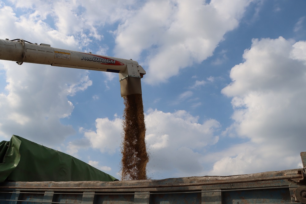 一粒粒飽滿的稻谷被收割機收入“囊”中,隨后又被裝到停在田埂邊的運糧車上,一車車滿載糧食的卡車開往就近的農事服務中心排隊卸糧、烘干、裝倉。