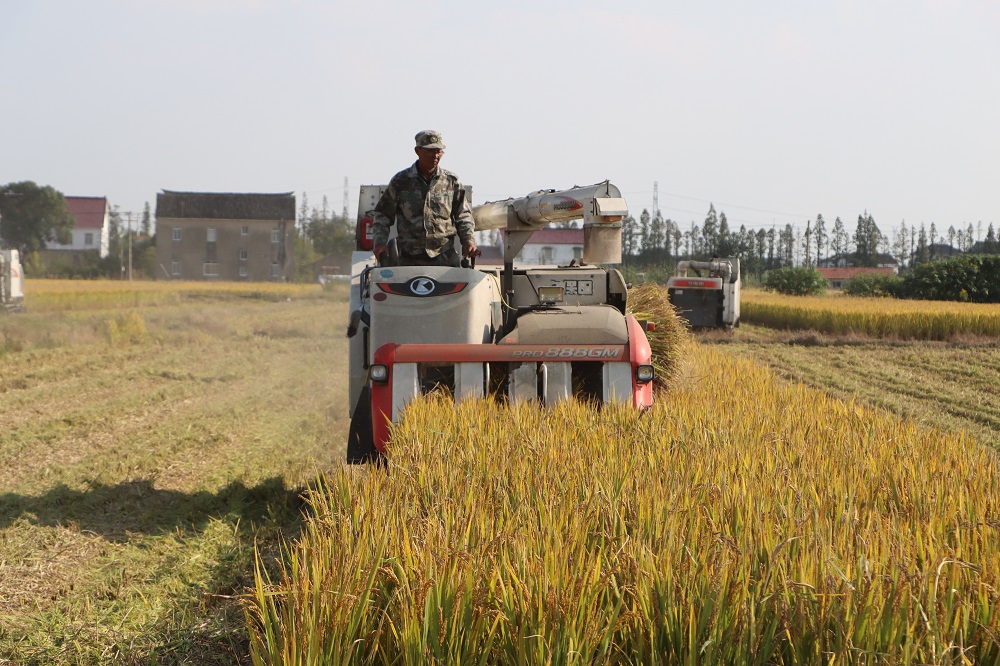 秋風掠過,稻浪滾滾,在蘇州蘇墾陸家園區生產基地,七八臺收割機正馬力全開,在田間來回穿梭,收割、脫粒一氣呵成,伴隨著機器陣陣轟鳴聲,蘇州蘇墾今年的秋收秋種工作全面展開。