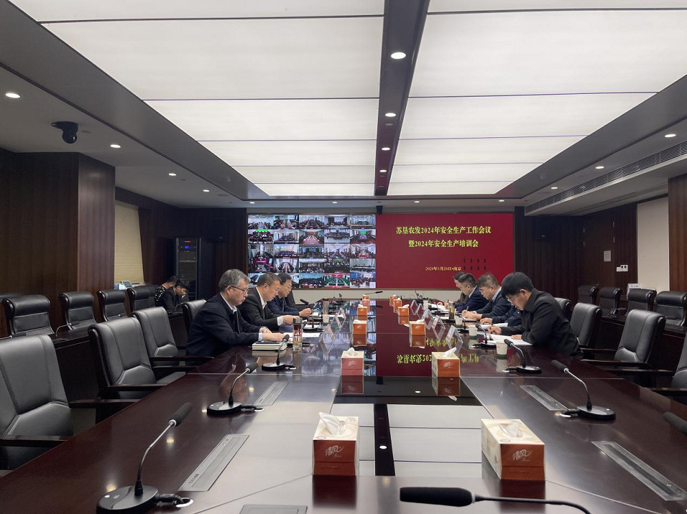 3月26日下午14時30分,蘇墾農發召開2024年安全生產工作會議暨2024年安全生產培訓會,會議以視頻會議方式召開,主會場設在蘇墾大廈1208會議室,各分、子公司和農科院設分會場,公司安委會成員,分、子公司和農科院安委會(安全生產領導小組)成員、安全員參加了本次會議。會議由公司總裁、安委會主任丁濤主持。