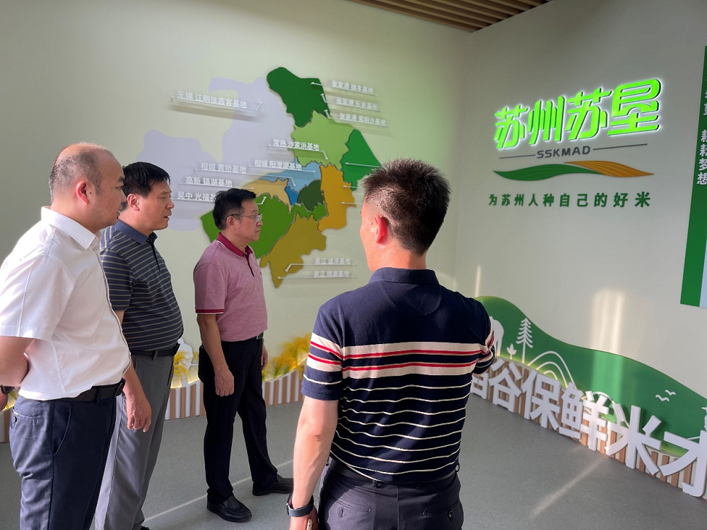 蘇州蘇墾工作人員介紹了蘇州蘇墾成立以來的發展情況、基地布局情況、水稻種植情況和“蘇墾15度鮮”大米品牌打造情況。李德和夏春勝詳細詢問了“蘇墾15度鮮”品牌內涵、品牌定位、產品品質、市場銷售等情況,對蘇州蘇墾在經濟最發達地區“蘇墾模式”的推廣取得的成績給予了充分肯定。李德希望蘇州蘇墾充分發揮江南魚米之鄉、陽澄湖和太湖等地域優勢,充分挖掘蘇州文化內涵,融合開展“水韻蘇米”品牌宣傳,為“水韻蘇米”品牌建設貢獻力量。