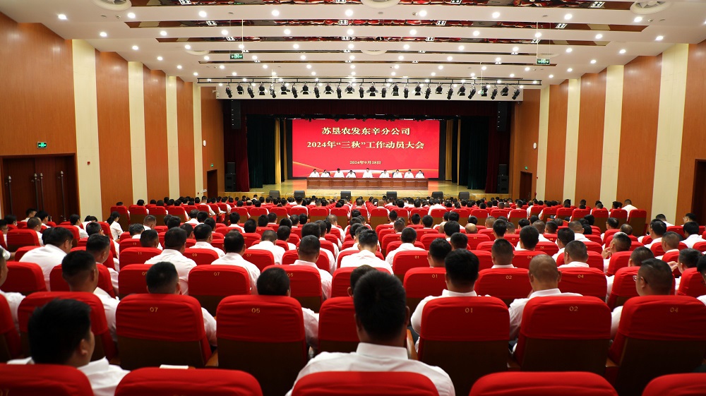 東辛領導班子,農場公司、蘇墾農發東辛分公司機關部門及社區副股級及以上人員,農場公司經營單位主要負責人,分公司各生產區、農牧中心領導班子、技術員、大隊負責人,“三秋”督查組全體人員,派出所、交警隊、大華種業、農服中心、農科所相關人員共計420余人參加會議。
