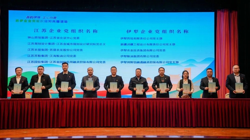 •        12月3日,“蘇韻伊情·企心向黨”蘇伊企業黨組織結對共建活動在江蘇南京啟動,江蘇、伊犁兩地78家企業黨組織一對一或多對一簽約結成40對共建單位,蘇墾農發黨委作為江蘇農墾集團代表參加了本次活動,與伊犁農業投資集團黨委簽訂結對共建協議書。