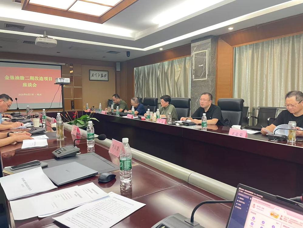 8月7日下午,金墾油脂召開二期改造項目座談會,集團黨委委員、蘇墾農發總裁丁濤出席會議并講話。金太陽糧油領導班子、顧問及生產骨干,金墾油脂相關人員參加會議。