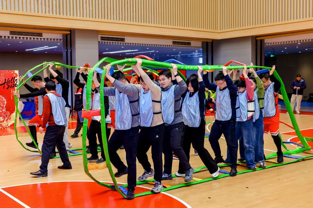 風(fēng)采表演結(jié)束后,活動(dòng)進(jìn)入趣味運(yùn)動(dòng)環(huán)節(jié)。“穩(wěn)中求進(jìn)”“全力以赴”“步步高升”“繩采飛揚(yáng)”“同心共濟(jì)”“青苗接力”等項(xiàng)目集競(jìng)技、協(xié)作與趣味于一體,各參賽隊(duì)你追我趕、配合默契,現(xiàn)場(chǎng)歡呼聲、加油聲此起彼伏。其間穿插的《瘋狂馬拉松》《馬到成功》等大屏互動(dòng)節(jié)目,進(jìn)一步點(diǎn)燃職工參與熱情。壓軸項(xiàng)目“眾志成城”拔河比賽將活動(dòng)推向高潮,參賽隊(duì)伍全力以赴、奮勇拼搏,場(chǎng)下吶喊助威聲浪迭起。經(jīng)過激烈角逐,米業(yè)一隊(duì)、農(nóng)服隊(duì)、農(nóng)發(fā)一隊(duì)?wèi){借總成績(jī)前3名分別拿下趣味運(yùn)動(dòng)比賽團(tuán)體冠軍、亞軍和季軍。